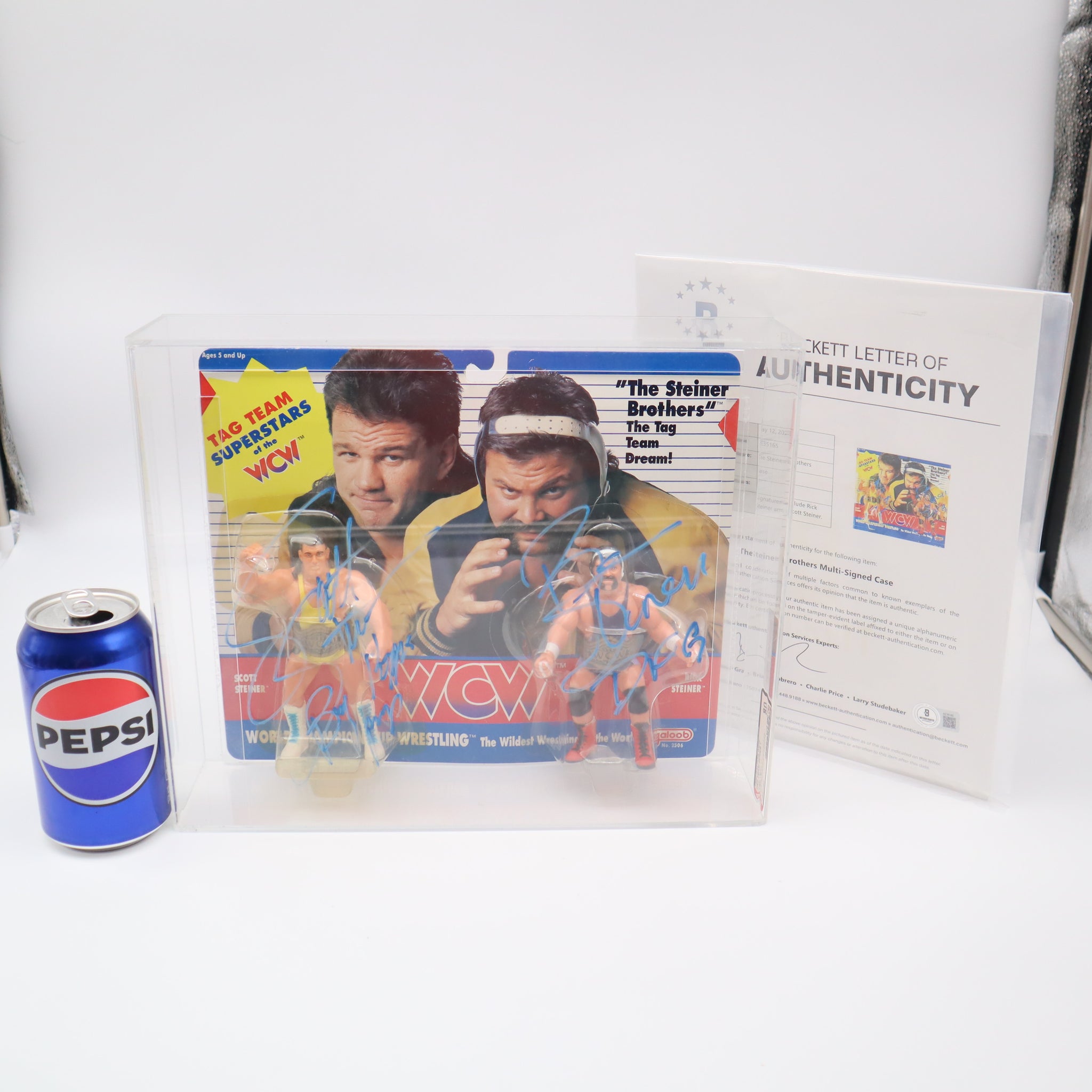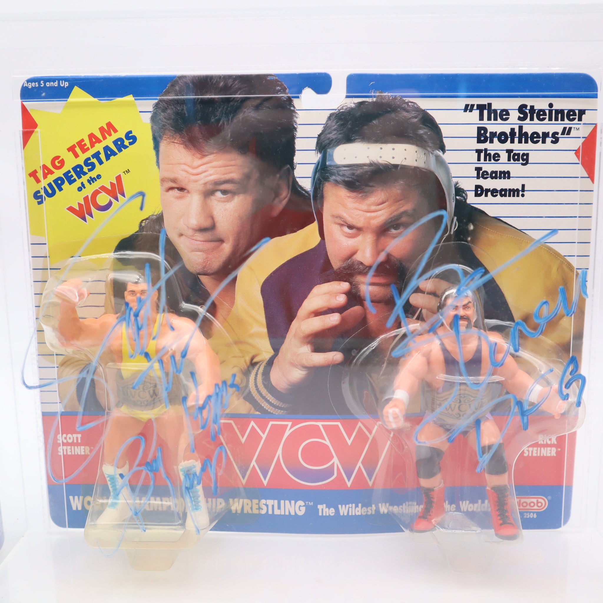 AUTOGRAPHED WCW THE STEINER BROTHERS TAG TEAM FIGURES - 1990 GALOOB - AFA GRADED 80 NM NEW Authentic & Factory Sealed! BECKETT AUTHENTICATED!