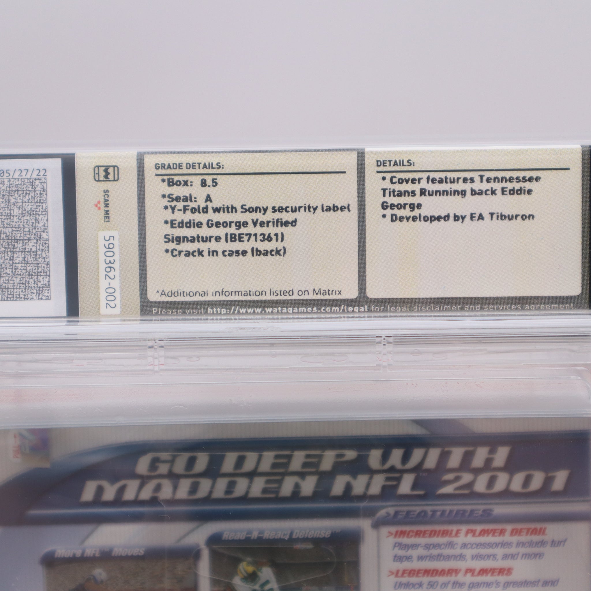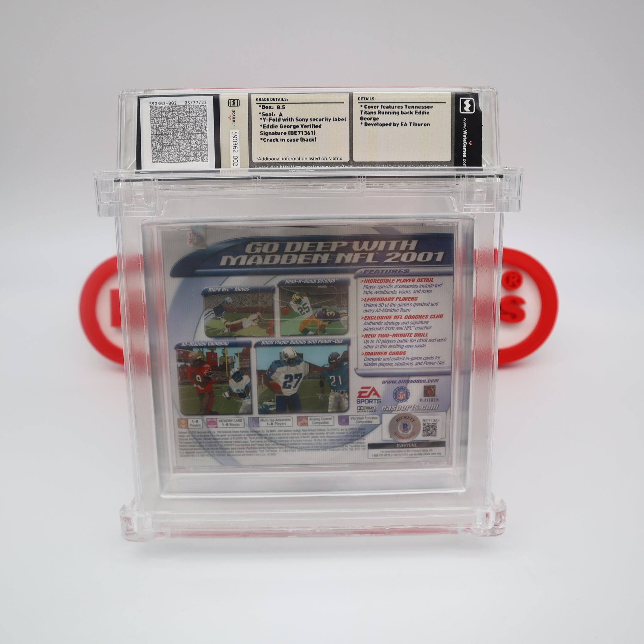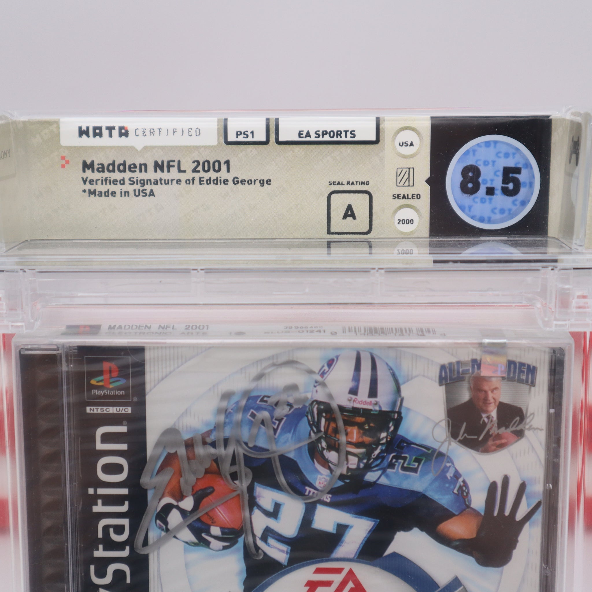 MADDEN NFL 2001 - AUTOGRAPHED BY COVER PLAYER EDDIE GEORGE - BECKETT & WATA GRADED 8.5 A! NEW & Factory Sealed! (PS1 PlayStation 1)