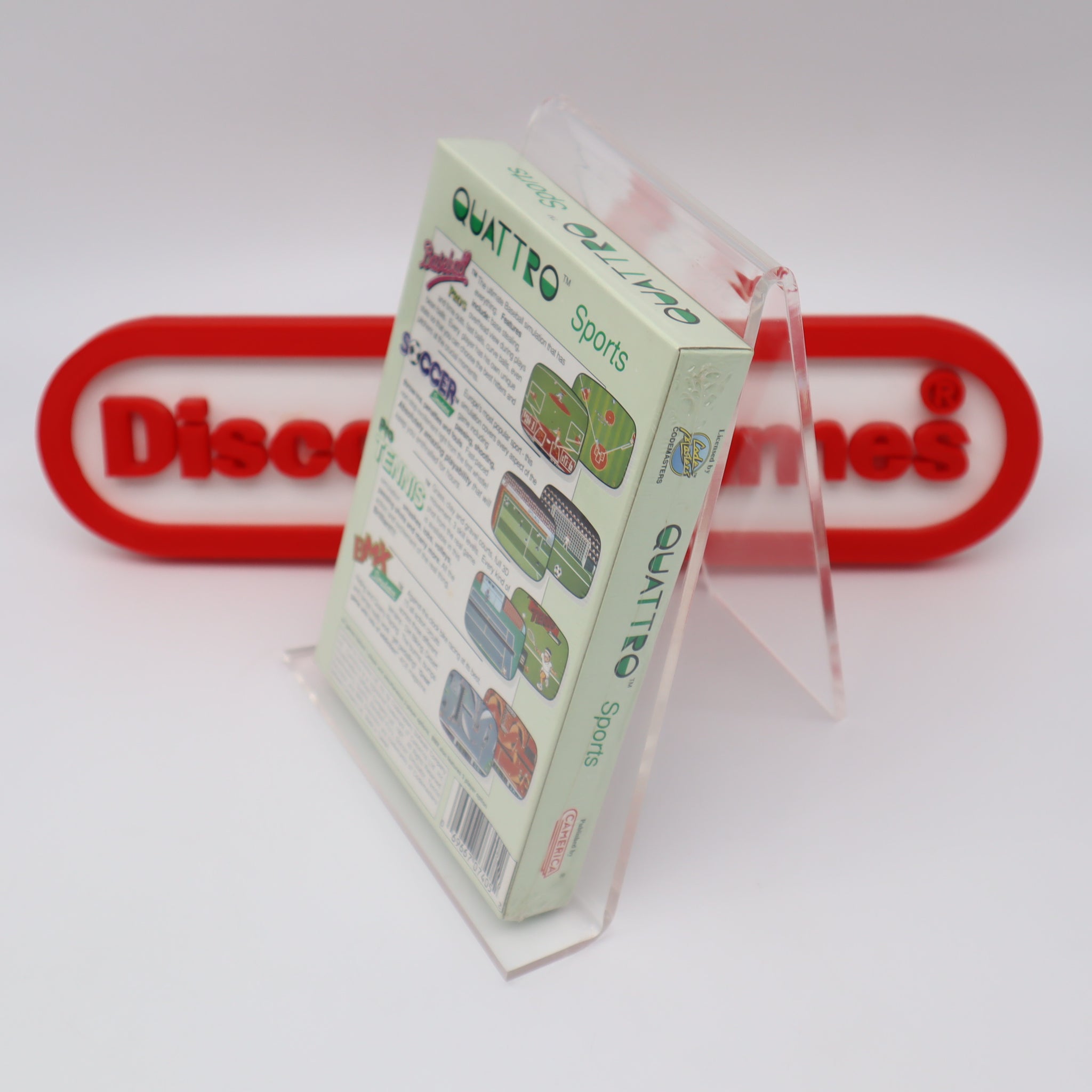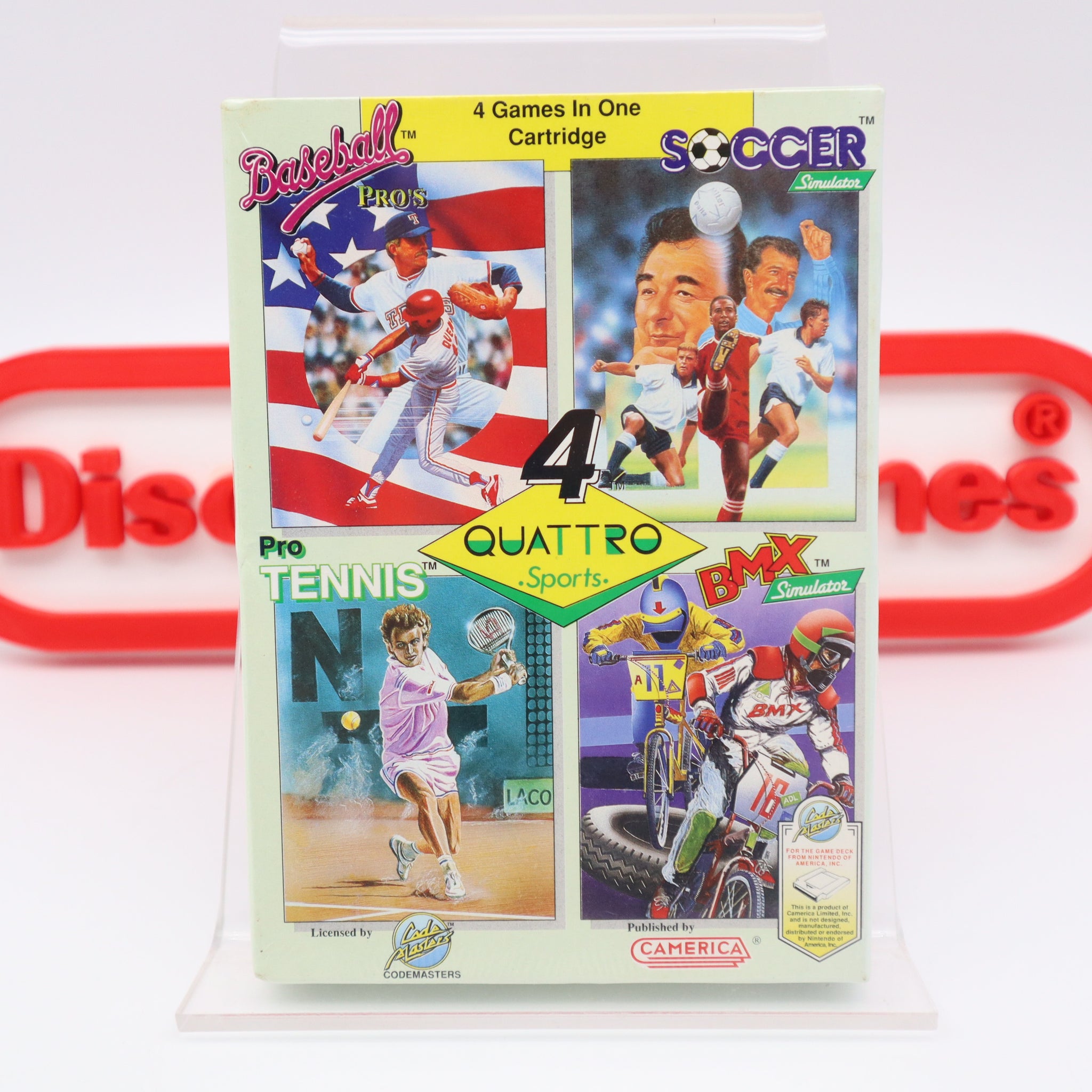 Game Name: QUATTRO SPORTS: INCLUDING TEH GAMES BASEBALL PRO'S, SOCCER SIMULATOR, PRO TENNIS, and BMX SIMULATOR!