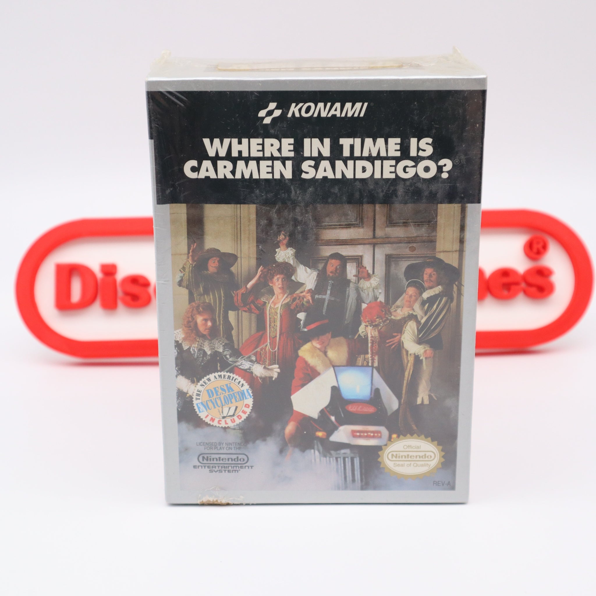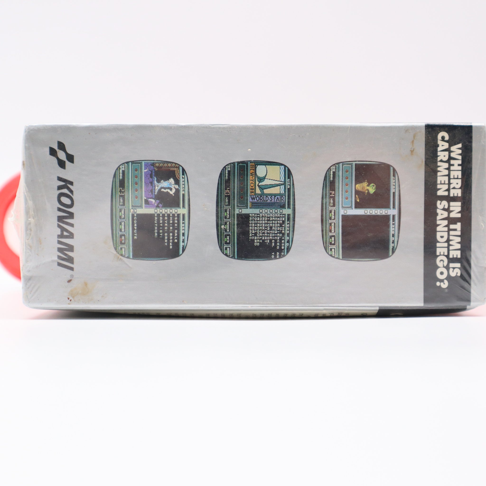 KONAMI: WHERE IN TIME IS CARMEN SANDIEGO? - NEW & Factory Sealed with Authentic 3-Sided Seam! (NES Nintendo)